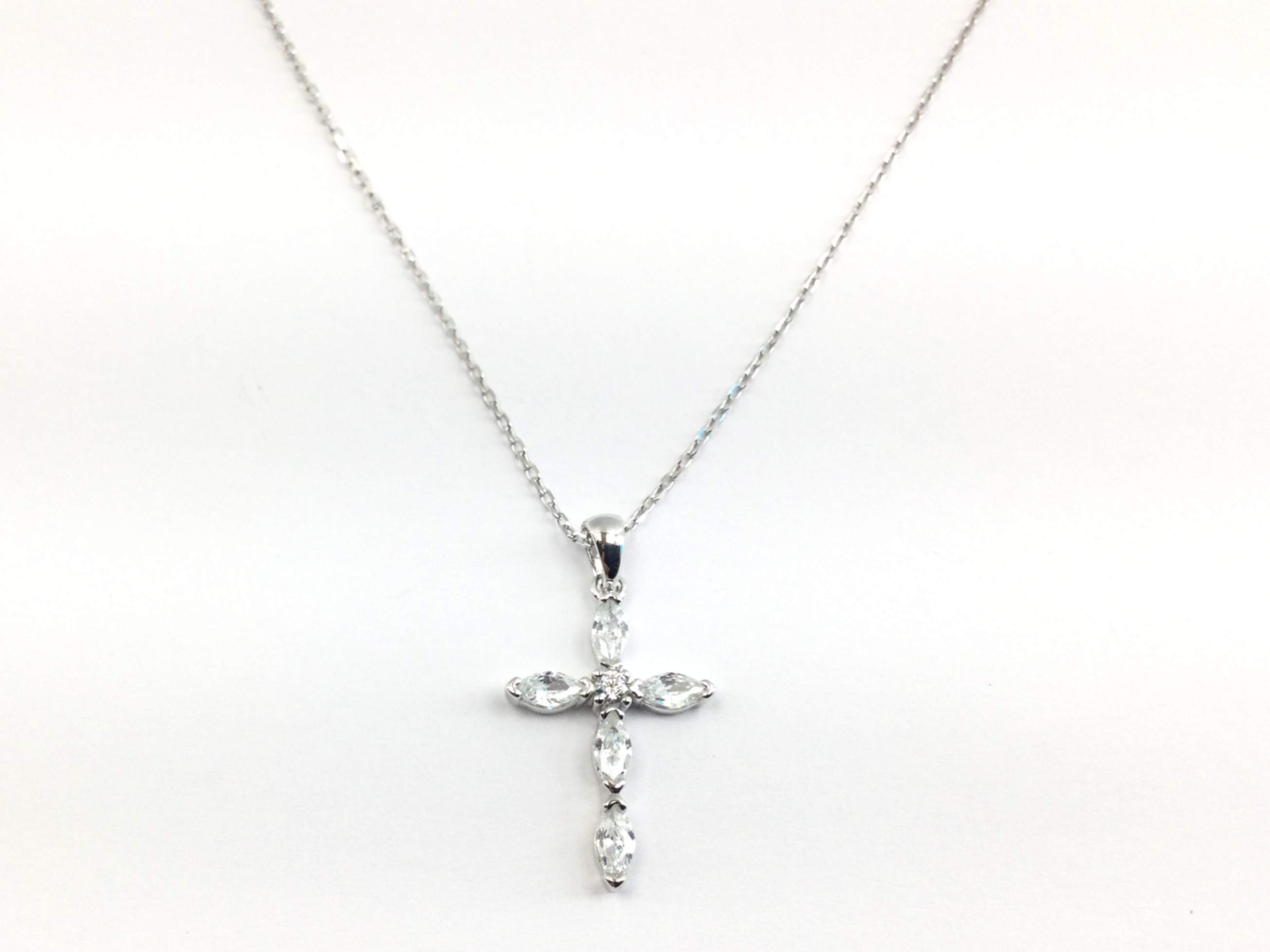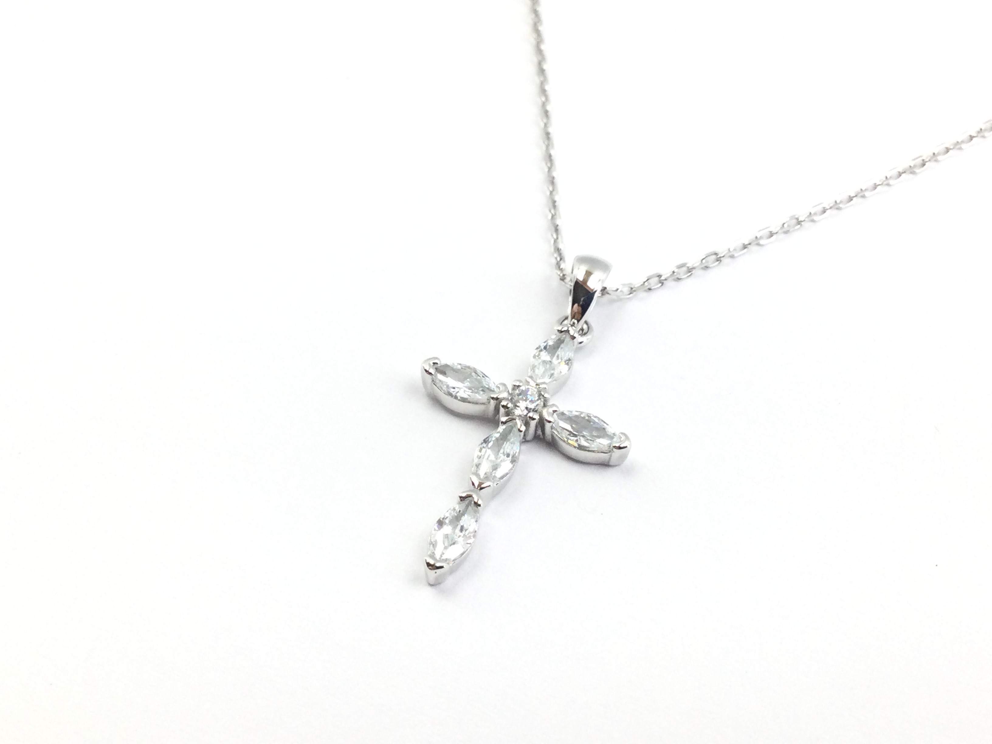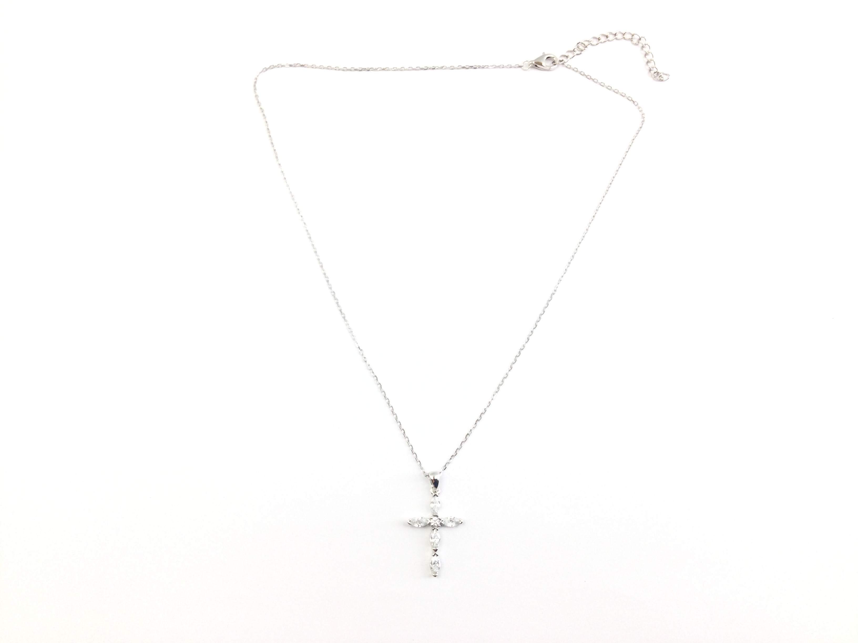 - detalhes joia: cadena forzada de 1mm con colgante de cruz con piedras talla navette y brillante