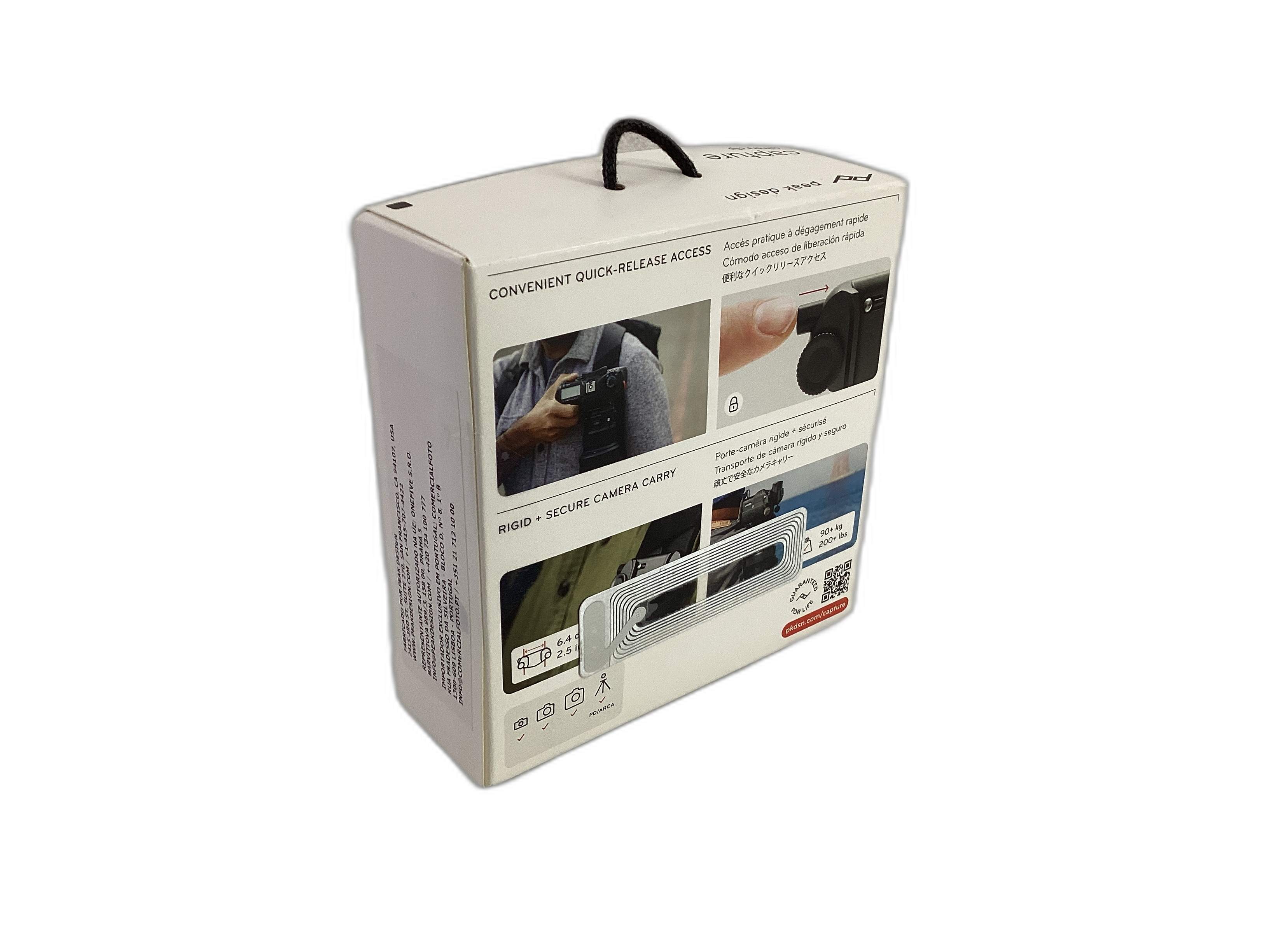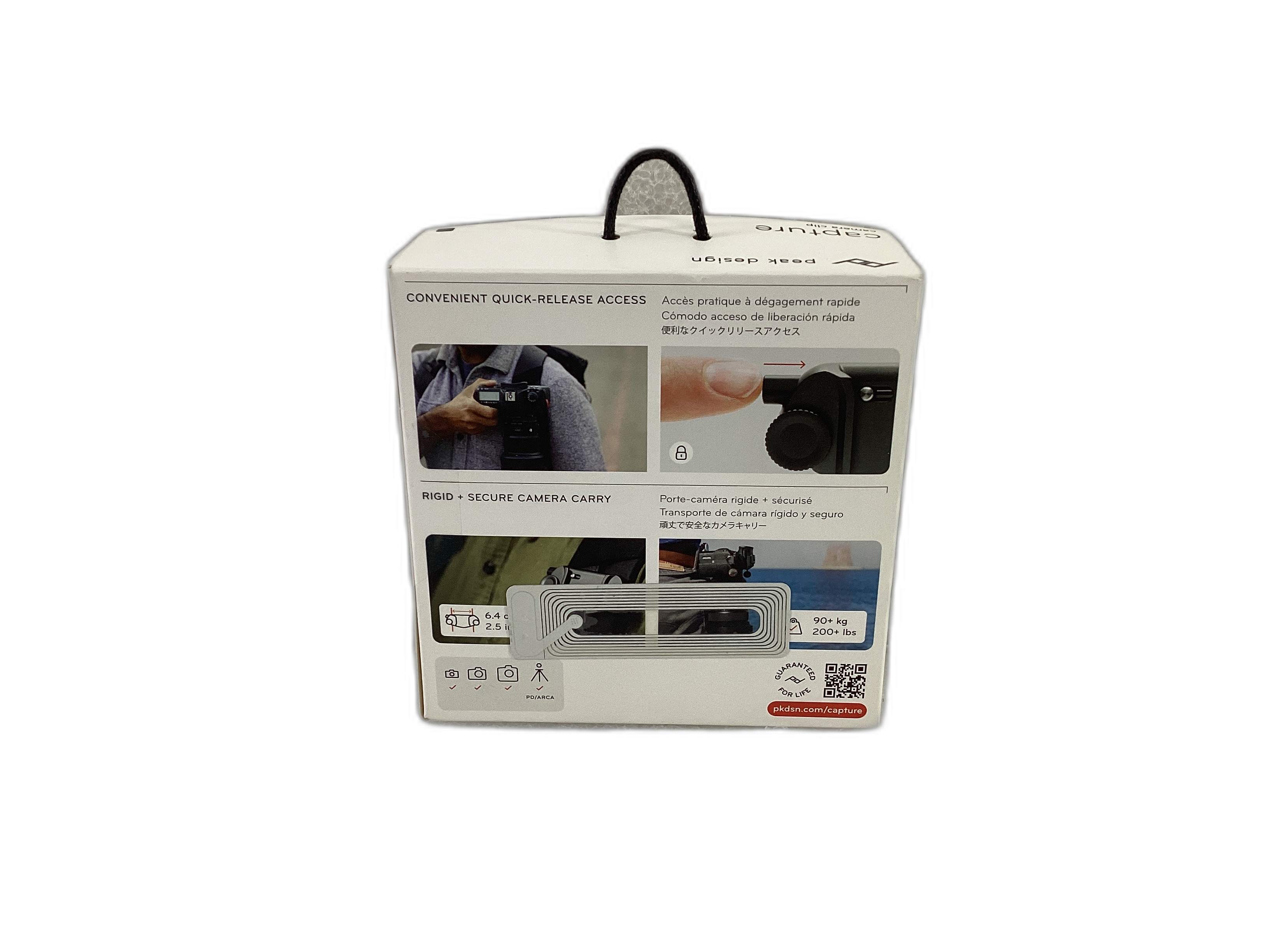 O clip de captura da Peak Design apresenta um design robusto e fiável, proporcionando uma fixação firme e segura da sua câmera. Isto permite-lhe aceder rapidamente ao seu equipamento, facilitando a sua utilização em diversas situações fotográficas. Além disso, a sua construção versátil torna-o numa solução conveniente para transportar a sua câmera de forma segura.