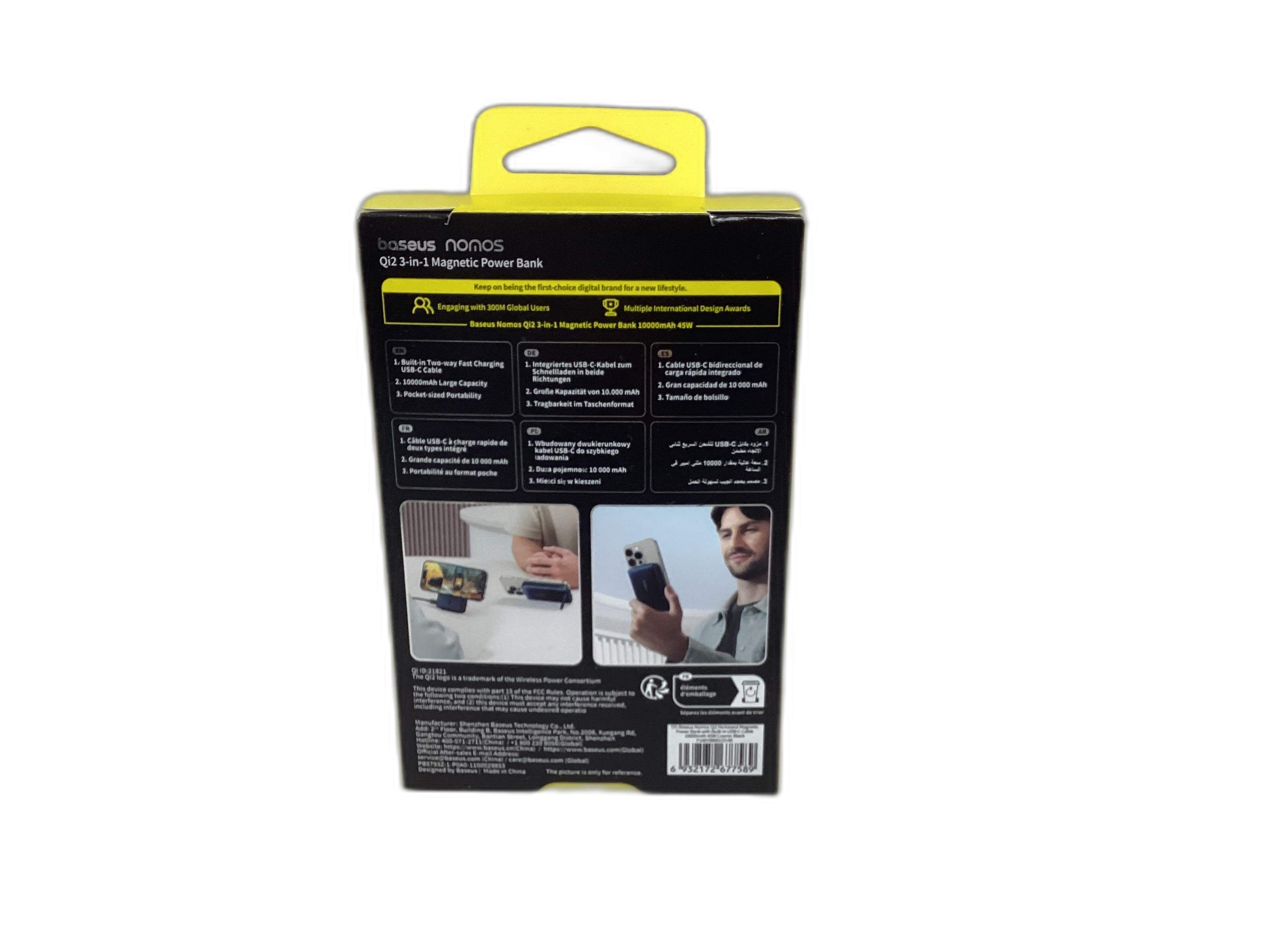 - descrição: baseus nomos qi2 kickstand magnetic power bank 10000mah 45w cosmic black
