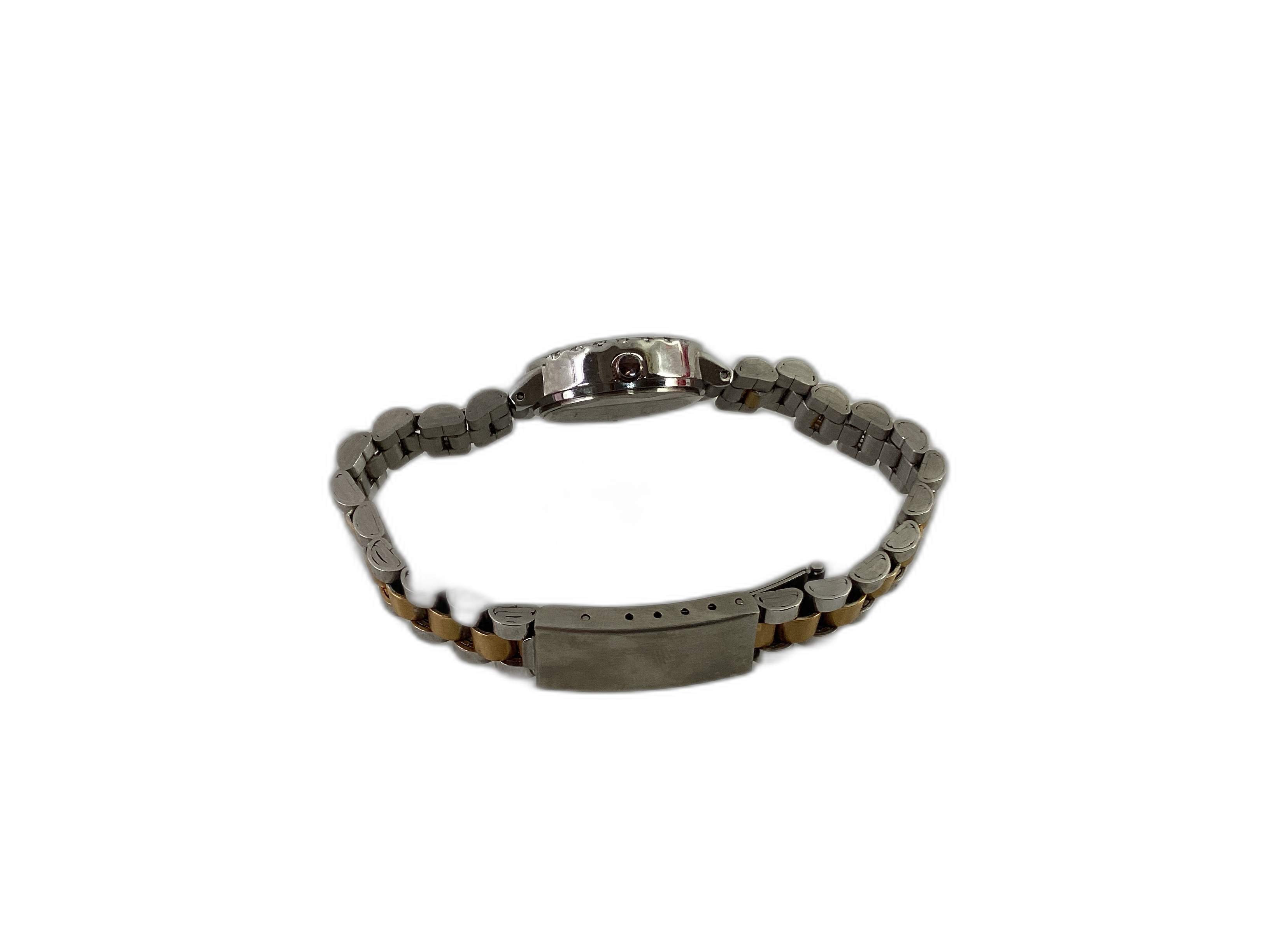 A sua caixa em aço e ouro, juntamente com o vidro mineral, conferem-lhe um aspeto refinado e durável. As suas funções de horas, minutos e segundos facilitam a leitura da hora, tornando-o um companheiro prático no dia a dia.