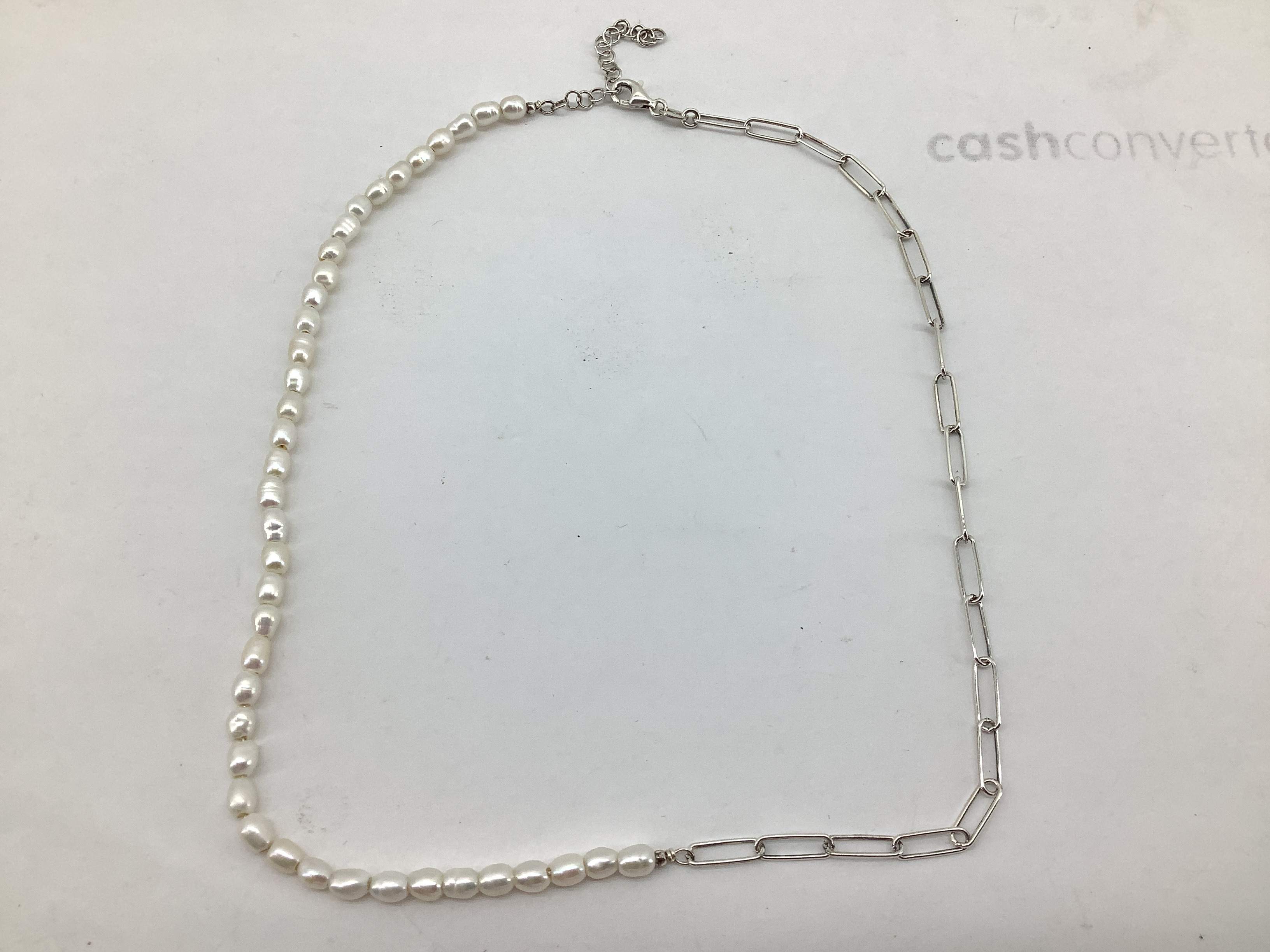 colar prata 925mm com pedra con perla 22cm