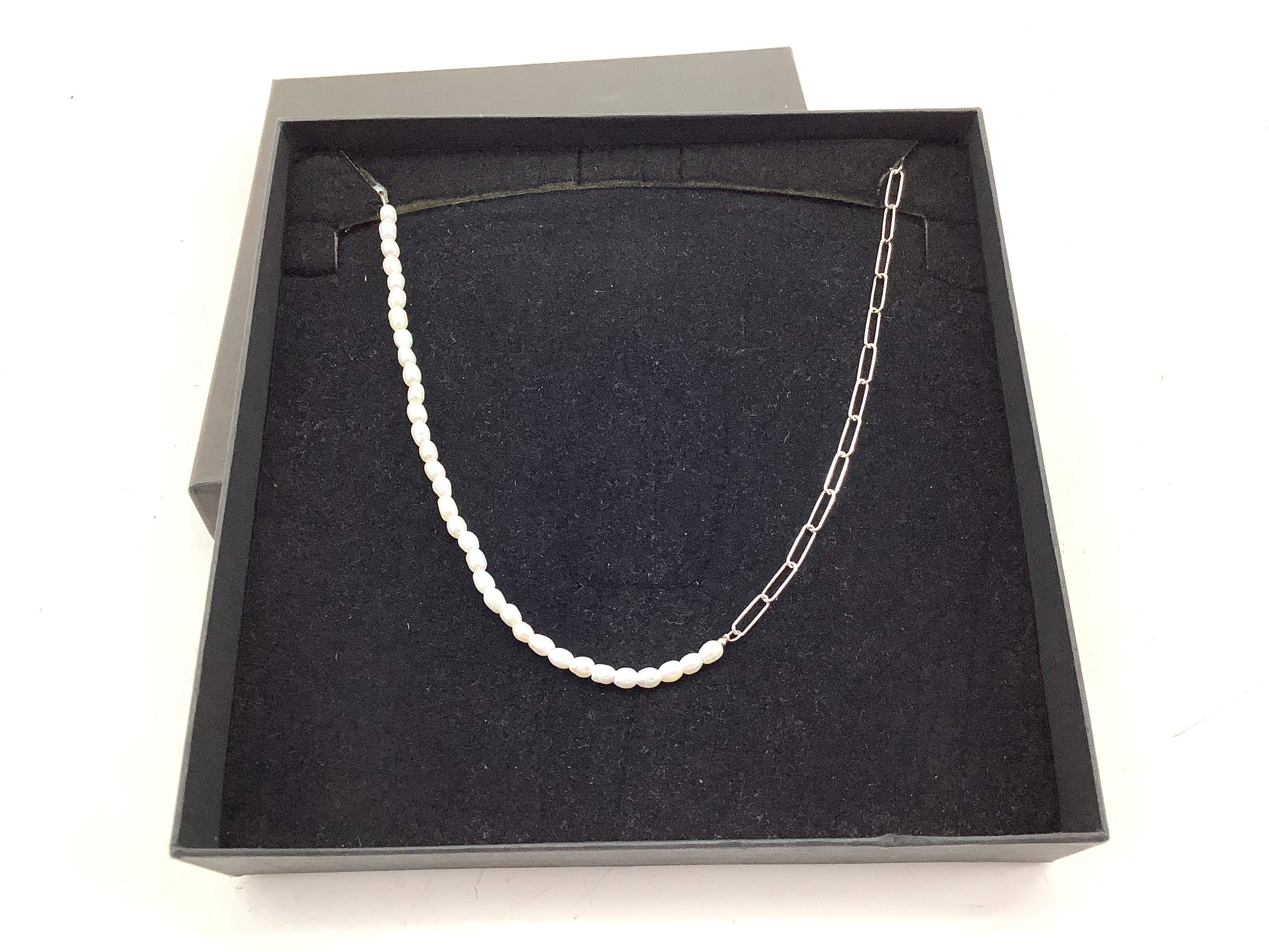 - detalhes joia: collar mitad cadena bilbao con tramo de perlas